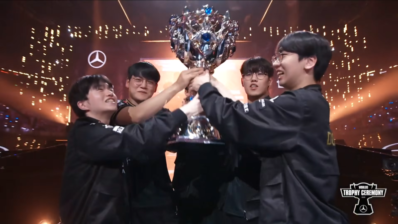 KT는 오브젝트 운영으로 비디디의 스몰더가 성장할 시간을 벌었지만, T1은 후반에도 집중력을 잃지 않고 더 강하게 압박했다. 성장한 도란의 카밀과 오너의 판테온이 끊임없이 KT에게 돌진했고, ‘구마유시’의 미스포츈이 폭발적인 화력으로 결정적인 교전을 마무리했다. 마지막 넥서스가 파괴되는 순간, T1은 3연속 월드 챔피언의 왕관을 머리에 썼다.
