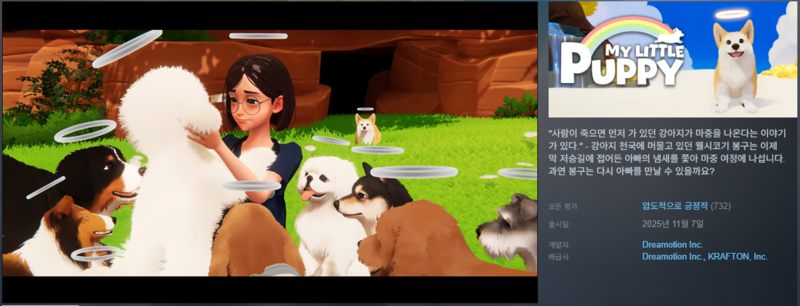 크래프톤 산하 드림모션이 개발해 11월 7일 출시한 신작 ‘마이 리틀 퍼피’가 게이머들의 마음을 깊이 파고들면서 조용하지만 거대한 파장을 일으키고 있다.