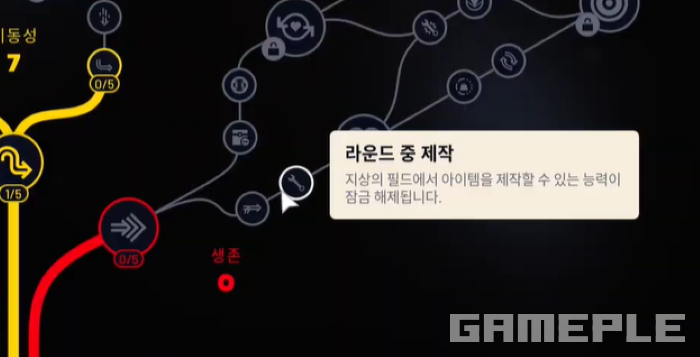 아크 레이더스에서는 필드에서도 아이템을 제작할 수 있는 기능이 존재한다. 스킬의 생존 트리에서 ‘라운드 중 제작’을 해금하면, 회복 아이템과 같은 기본적인 아이템을 전장 한가운데서 바로 만들어 사용할 수 있다. 이는 생존율을 획기적으로 높여주는 기능으로, 대부분의 유저가 가장 먼저 투자하는 스킬 중 하나다.
