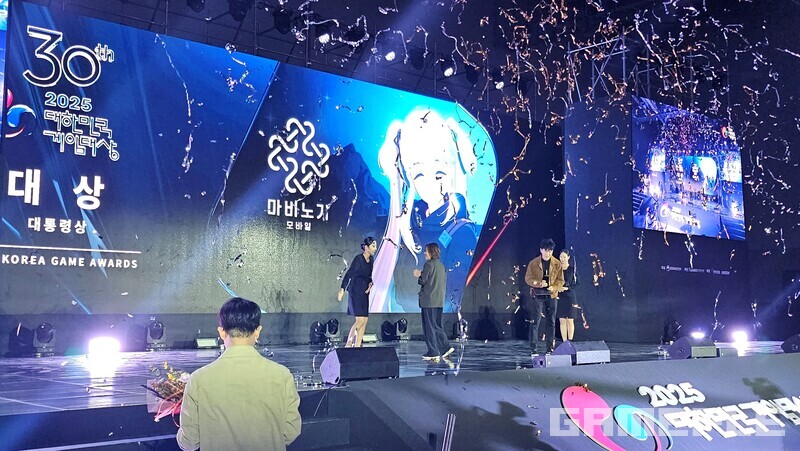 12일 부산 벡스코 제2전시장에서 개최한 '2025 대한민국 게임대상'에서, 데브캣이 개발하고 넥슨이 서비스하는 '마비노기 모바일'이 대상 수상의 영예를 안았다.