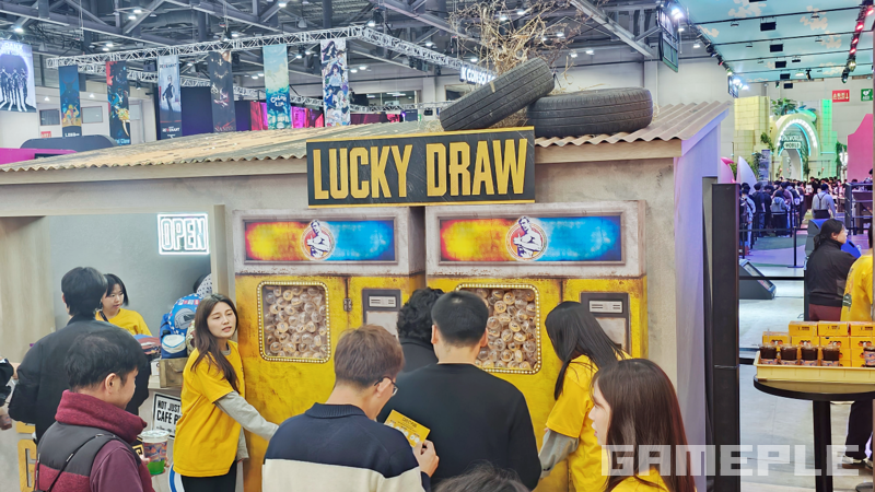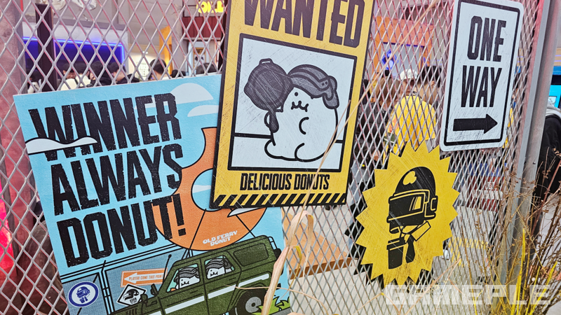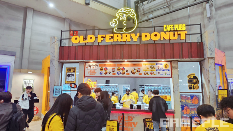부스 우측 '카페 펍지'는 'PUBG: 배틀그라운드'를 통한 휴식과 체험을 선사한다. 수제 도넛 브랜드 올드페리도넛과 협업한 한정 메뉴와 음료를 맛보고, 비밀의 방 슈팅 존과 사격 체험 및 럭키 드로우를 선보였다.