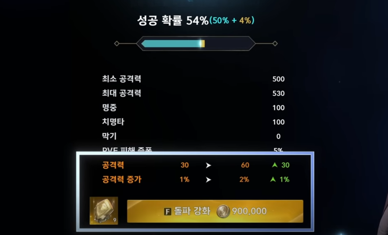 일반 강화는 간단하다. 인게임 플레이로 얻는 강화석을 사용해 장비를 사용하면 주요 능력치가 상승한다. 고등급 강화에 들어가면 실패 확률이 점차 늘어난다. 하지만 실패해도 장비가 손상되지 않고, 성공 확률이 계속 늘어나므로 누구나 부담 없이 시도해 성공으로 향할 수 있다.