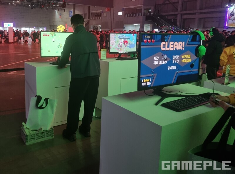 10홀은 다양한 미니게임으로 가득했다. ‘파핑파핑 8비트 플레인’ 존에서는 도트 감성의 미니게임을 체험할 수 있었고, 바로 옆에 위치한 공방에서 ‘모험가 아크릴 스탠드’와 디오라마를 직접 제작해볼 수 있었다.
